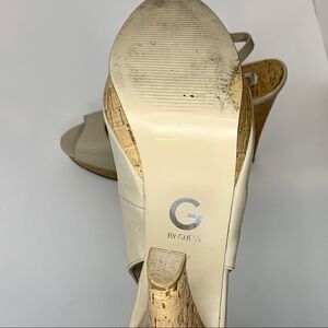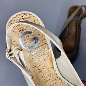 Sexy cork heels, great neutral patent shoe, excellent condition.