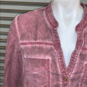 G by Guess tunic style top with roll up sleeve mauve color Gently used see photos for more details Women’s size medium A70