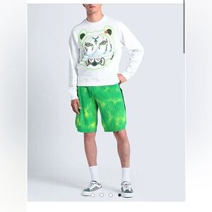 Gcds Mens acid green knit Bermuda Shorts With Logo Band