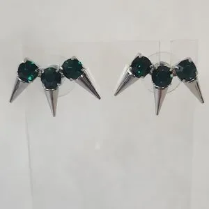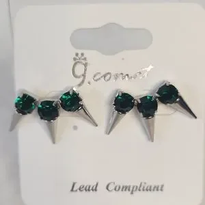 G.comet Metal Rhinestone Button Earring Set. Width x Length : 1/2" X Material : Metal, Rhinestone Metal Color : Rhodiumized Point Color : Emerald Earring Closure : Post