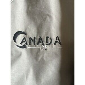 This Gear For Sport jacket in size small is a stylish addition to any wardrobe. The khaki color, elastic waist, and roll up collar give it a preppy vibe, making it perfect for a casual day out or a weekend trip. The jacket is made by a well-known brand and features Canada embroidery on the front.