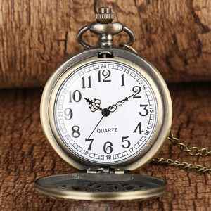 Unique pocket watch is a real showstopper! Quartz movement, metal casing in antique bronze finish. Battery included. Includes black velvet gift pouch.