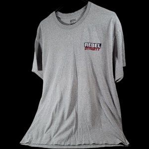 Rebel Dynasty XL T Shirt. Gray. Good condition. Made of 90 % cotton 10% Polyester. Gear for Sports brand. Exclusive of decoration. Made in Honduras Numbered RN48314. Length 29 inches. Short Sleeve. Machine washable. Low heat to dry. Do not use bleach. box c