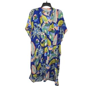 {Gear} Womens Vintage Leaf Print Long Front Tie Caftan Cardigan Dress - Size 2X
