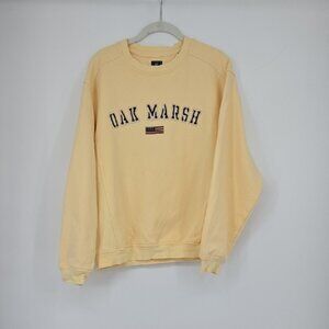 Stay cozy and stylish with this men’s Gear for Sport crewneck sweater in a soft yellow hue. Features “Oak Marsh” text and an American flag on the front — perfect for casual outings or layering on cool days.