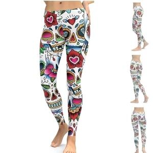 Gearbunch Multicolor Sugar Skull Day Of The Dead Athletic Workout Yoga Leggings