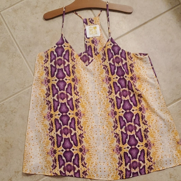 Never worn! Double-lined loose Y back tank. Comes from a smoke-free, pet-free home. Fast shipping!!