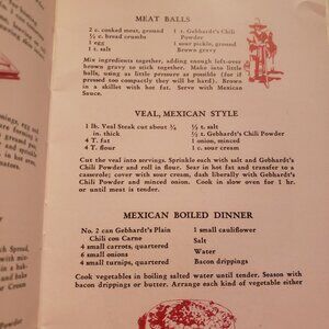 This delightful 1930s Gebhardt's Mexican Cookery book brings vintage charm to your kitchen. Featuring classic recipes, it's a treasure trove for culinary enthusiasts.