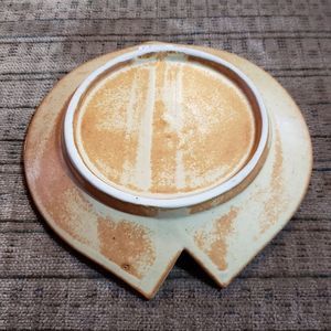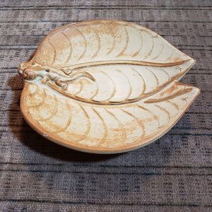 Two leaf sculptured plate shaped incense burner with lizard accent. Beige/Light Rust coloring.