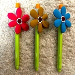 - 3 ea. flower ink pens. Size: 5.5" long x 0.39" wide (doesn't include flower). Black ink.