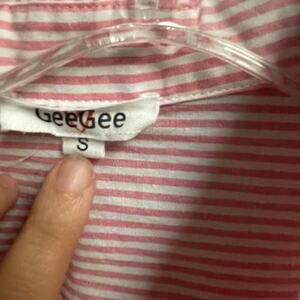 Gee Gee Pink Striped Shirt Button Down Lightweight Raw Hem Size Small