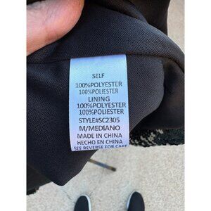 This Gee Gee jacket is designed with a striking black and gold sequin pattern that exudes elegance. The open-front style offers versatility in layering, while the medium size ensures a comfortable fit. Made from 100% polyester, this jacket is suitable for special occasions requiring a touch of glam.