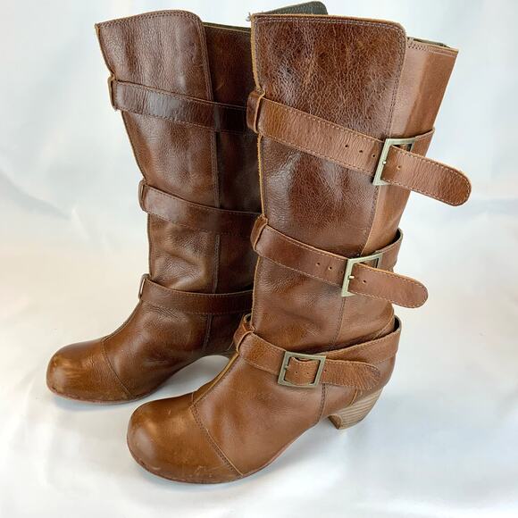 Gee WaWa Trisha Leather buckled Riding Boot Tan Rodeo Women's Size 8