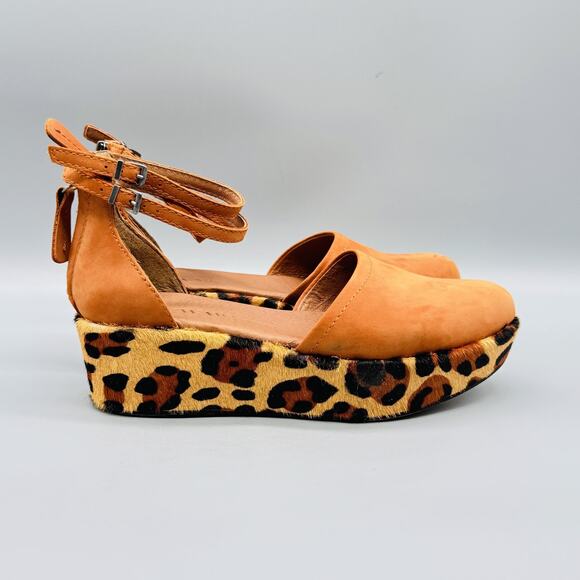 Gee Wawa Shoes Womens 8.5 Brown Leather Brady Calf Hair Platform Wedge Sandals