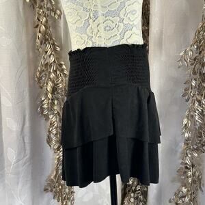 GeeGee Black Smocked Tiered Mini Skirt Faux Suede Sz S Cowgirl Aesthetic