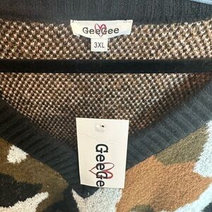 GeeGee Camouflage V-Neck Sweater 3XL | Super Soft & Warm | Longer Length New