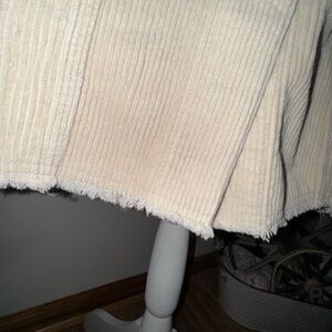 Stylish cream corduroy shirt/jacket dress. Features button-up front and chest pockets. Perfect for layering. Perfect for winter with tights/boots.
