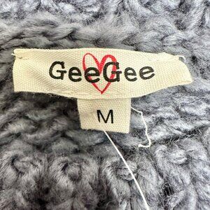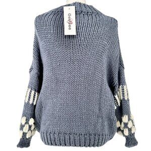 GeeGee Sweater Womens M Oversized Pullover Acrylic Slate Blue and White Knit