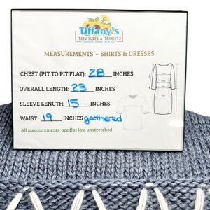 Chest: 28 inches, Overall Length: 23 inches, Sleeve Length: 15 inches