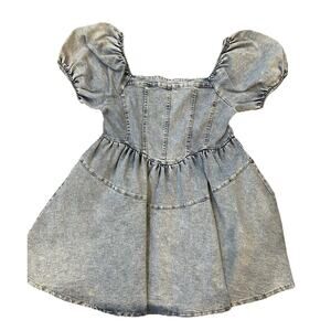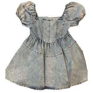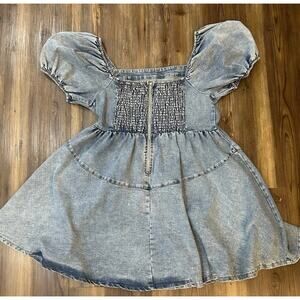 GeeGee y2k Puff Sleeve Denim Dress Size Large Jean Smocked Babydoll Full Skirt