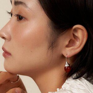 Geegee Carnelian Natural Stone Bell Hook Earring in Sterling Silver