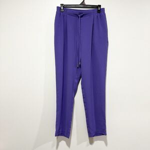 Geegee Purple Straight Leg Drawstring Office Pants Women Size Medium Oversized
