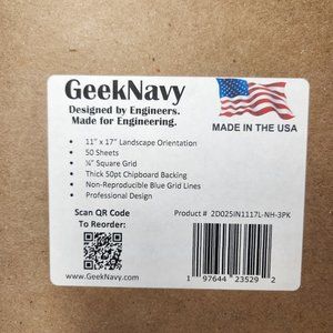 GeekNavy 11" x 17" Quadrille Graph Paper 50 Sheets Landscape - 0.25" Architect