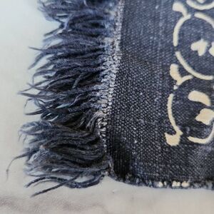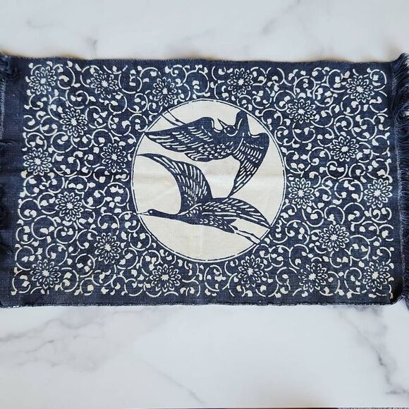 Geese canvas table cloth navy blue cream floral fringe trim bird aviary 1 piece