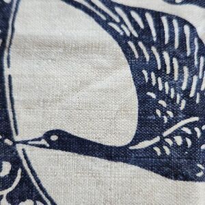 Geese canvas table cloth navy blue cream floral fringe trim bird aviary 1 piece