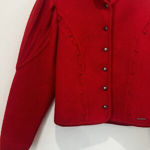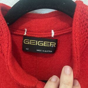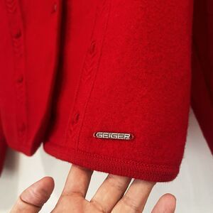 Geiger 40 Wool Cardigan Sweater Red Button Front Braid Austria Medium Preppy