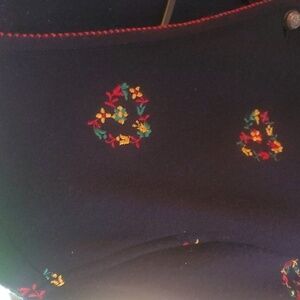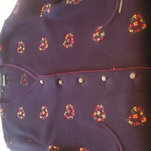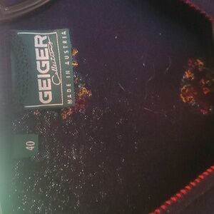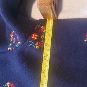 Geiger Austria Sz. 40 M L Embroidered Art 100% Boiled Navy Blue Wool Cardigan