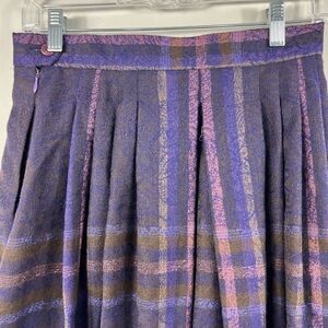 Geiger Austria Women's Vintage Long Purple Plaid Pleated Wool Midi Skirt in Size 38