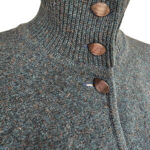 Authentic vintage Geiger of Austria women’s wool jacket. Features a button-front closure with distinctive oval buttons, ribbed stand collar that can be worn up or folded down, and two front pockets. Made in Austria from pure new wool — high-quality craftsmanship and classic alpine style.