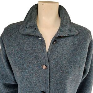 Geiger Austria Womens 40 Wool Jacket Cardigan Blue Button Front Pure New Wool