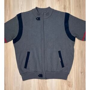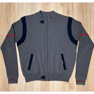 Geiger Men's Wool Bomber Jacket Vintage Grey Navy sz 52 EU or M / 42 US