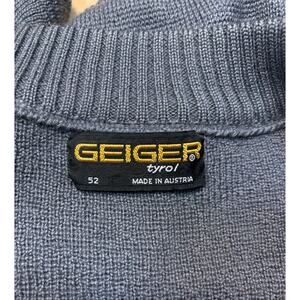 Geiger men's wool bomber jacket in grey with navy trim, sz 52 EU. Made in Austria. Such a great style and in very good condition. A 52 EU is the equivalent to a 42 US or a generous Medium.