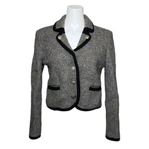 Geiger Vintage 80s Cropped Blazer Jacket Womens Medium Gray Wool Pockets Austria
