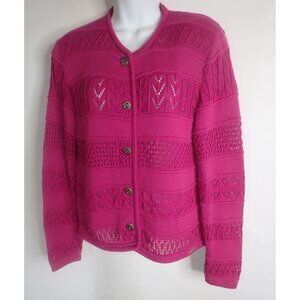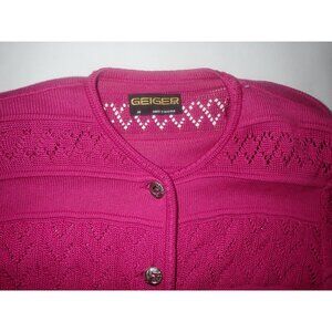 Geiger Women's Pink Button-Up Cardigan Sweater Size M 100% Cotton 38 Classic