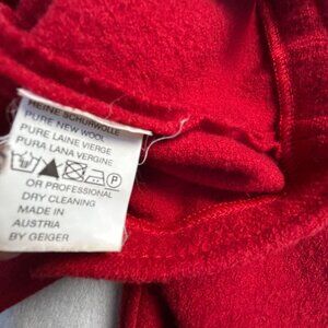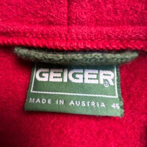 A timeless red wool blazer by Geiger, crafted in Austria. This elegant piece adds sophistication and warmth to your wardrobe, with a tailored fit that flatters any silhouette. Durable and stylish, it transitions seamlessly from office to evening wear, making it a versatile addition to your collection.