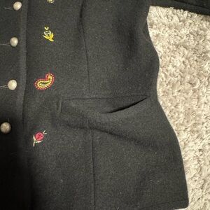 Embroidered wool jacket. Front pockets and shoulder pads. Great condition