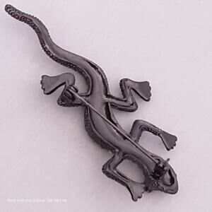 Gekko Brooch Green And Yellow Rhinestones Over Gun Metal