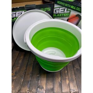 The Collapsible Gellet Tub is designed to hold over 15,000 gellets and folds flat when not in use for easy storage. It features a molded handle base for easy pouring and expands to hold one gallon of water. The tub is non-toxic, eco-safe, and an inexpensive way to grow your own ammo by hydrating gellets.