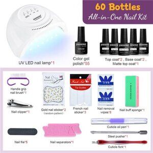 Gel Nail Polish Kit 60 PCS with U V Light Soak off Base Top Coat 55 Shine Colors
