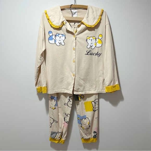 Gelato Pique Lucky Cat Ruffled Pajama Set Size XS Small Shirt and Pants Rare