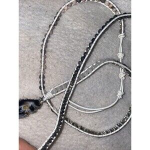Gem Agate Wrap Bracelet Leather Silver Toggle 38In BOHO Hippie White