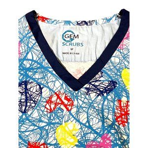 Gem Scrubs V-Neck Pockets Top Women's Valentines Scrub top Size M