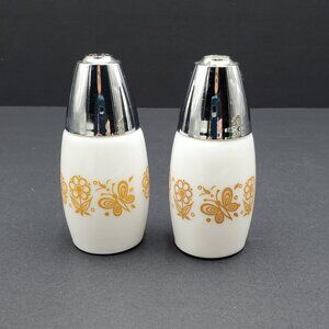 Gemco Westinghouse Butterfly Gold Salt & Pepper Shakers Gold on White Milk Glass