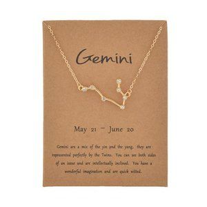 Our Gemini Rhinestone Constellation Astrological Necklace is offered in gold plating, the link necklace is durable and high quality, featuring your astrological constellation of choice with rhinestone accents on the pendant. For daily wear and special occasions.