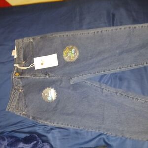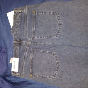 Stylish high rise mom jeans by Gemma Rae. Classic blue denim.