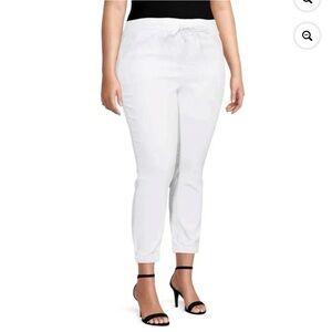 Gemma Rae Drawstring Waist Cropped Denim Joggers Women’s White Size 14W